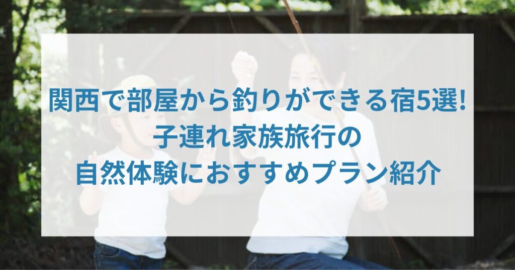 「関西への家族旅行で、部屋から釣りができる宿に泊まって、子供に様々な自然体験をさせてあげたい!」 そこで、こんなお悩みはありませんか? お悩み 関西で部屋から釣りができる宿はある? 子連れ家族旅行で自然体験できるプランはある? 関西は海と隣接し... -